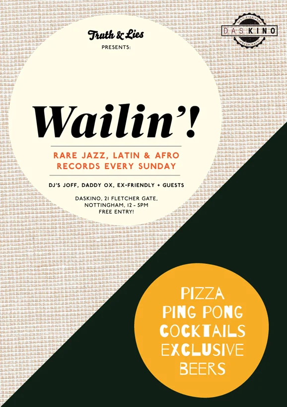 A regular Sunday session of top dollar jazz, latin and afro at Nottingham's newest bar and pizza joint, Das Kino..every week from midday to 5pm